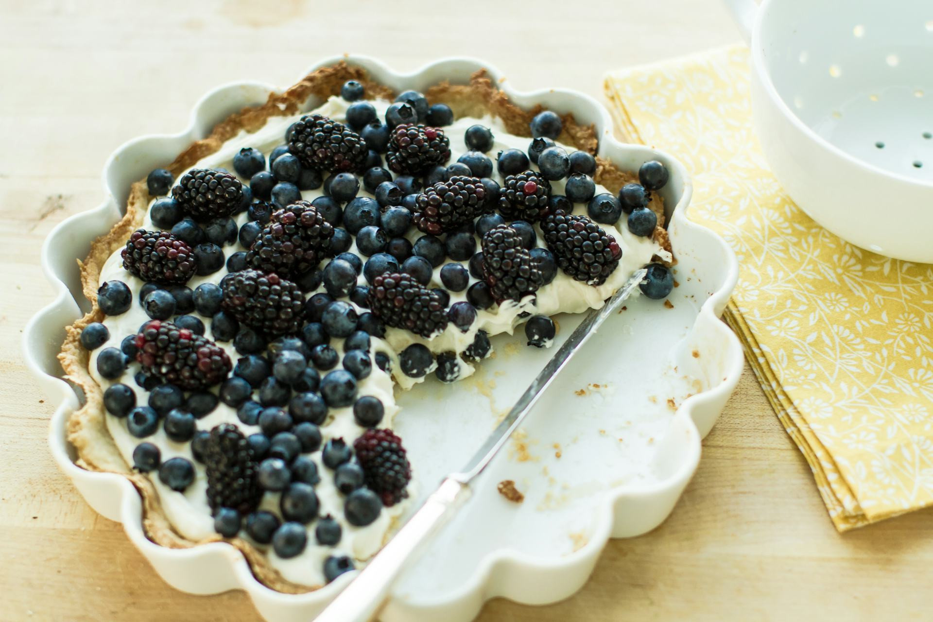 - Top med letpisket fløde med skyr for en friskere og lettere version.